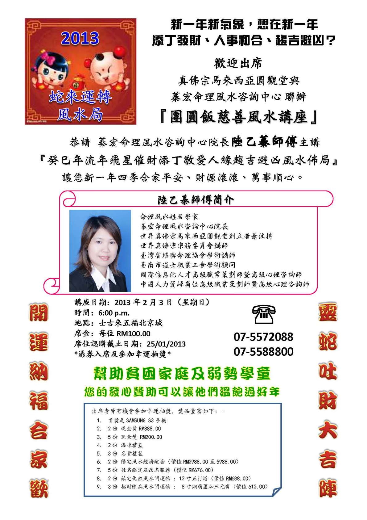 2013年蛇來運轉團圓飯慈善風水講座